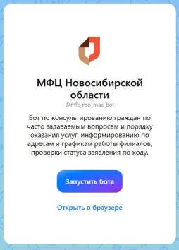 Чат-бот МФЦ Новосибирской области в МАХ Для удобства заявителей в МФЦ Новосибирской области функционируют различные цифровые сервисы. Среди них — чат-бот МФЦ Новосибирской области на отечественной площадке МАХ.